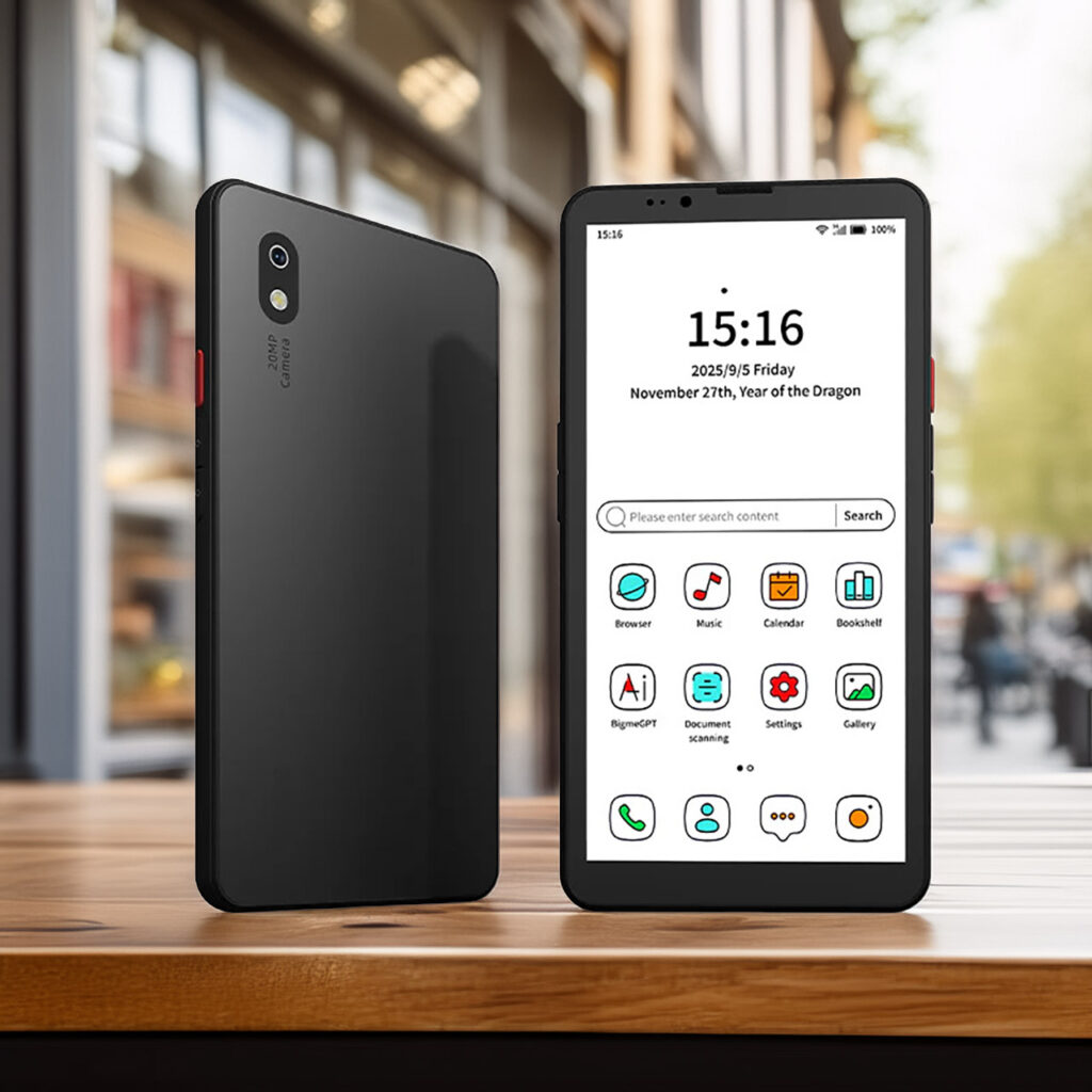 E Ink panels are best known from devices like the Amazon Kindle, prized for their paper-like readability and low strain during marathon reading sessions. Bigme extends this advantage to a full smartphone, pairing the Kaleido 3 screen with a MediaTek Dimensity 1080 processor, 8GB of RAM, and 256GB of storage. The display resolution stands at 824 × 1648, offering 300 ppi in monochrome and 150 ppi in color, with support for 4096 color shades. While colors appear softer compared to OLED, the payoff is in readability, energy savings, and an experience that feels more like ink on paper.